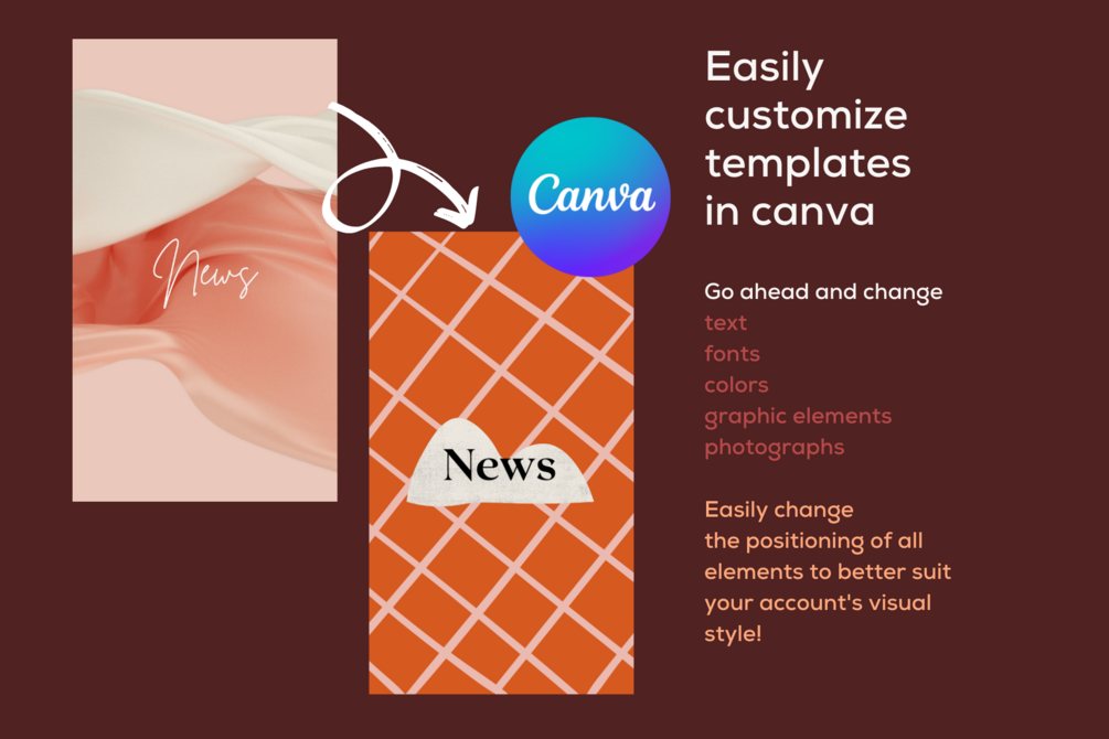 Edit and customize the designs to fit your social media style and content. You can edit text, fonts, colors, photographs, and all the graphic elements. You can also change the positioning of all the elements on the page.